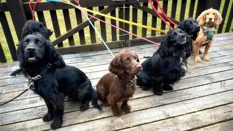 Dogs on the decking outside Brill Sports & Social Club